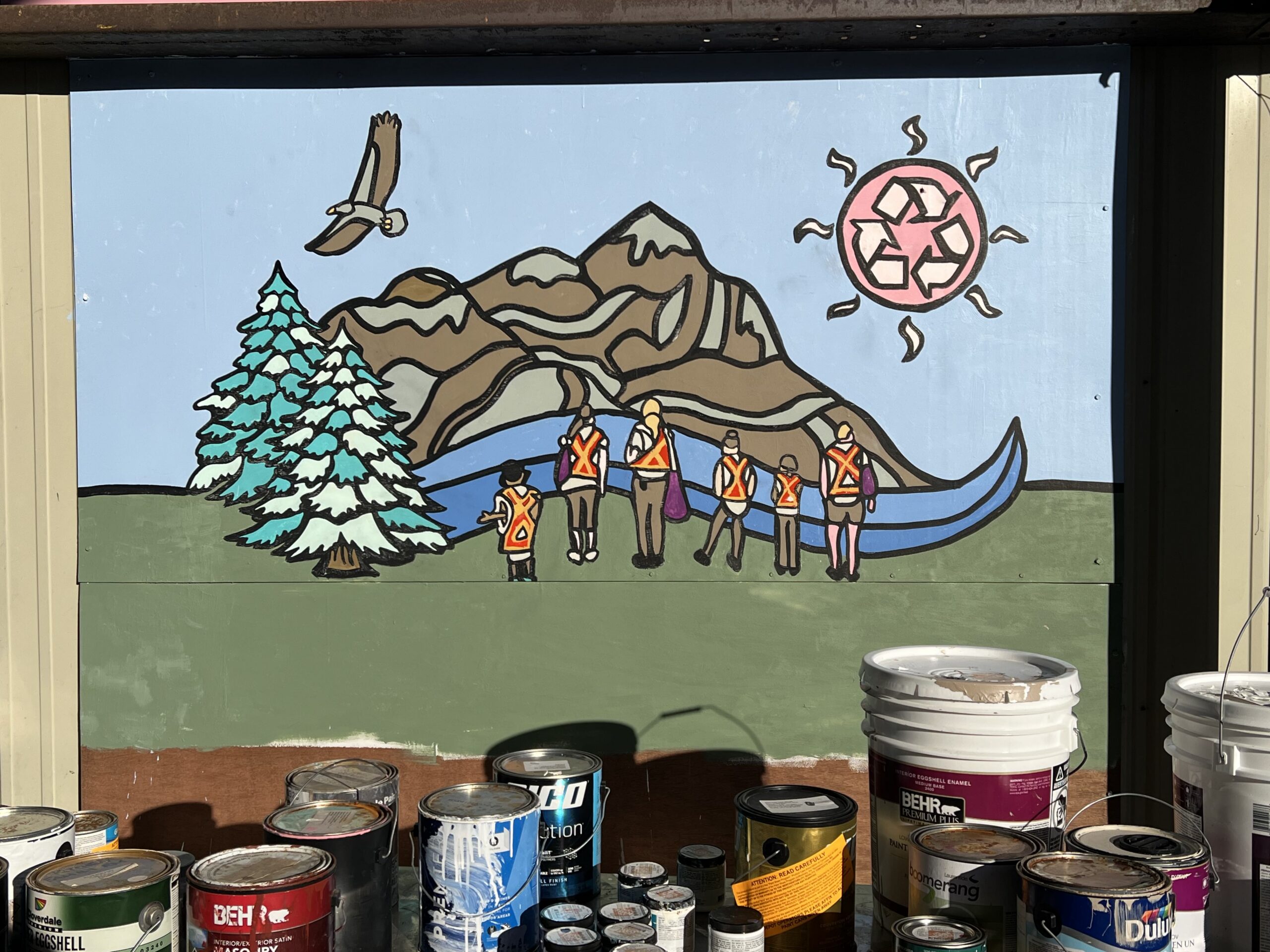 If you’ve ever dropped off leftover paint at a recycling location, you probably didn’t picture it ending up as a mural. But that’s exactly what happened at the Ridge Meadows Recycling Society depot in Maple Ridge, BC.