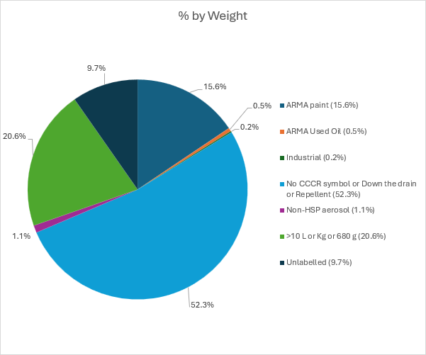 The chart below provides details on the composition of non-HSP HHW found in the sampled HHW collection containers.